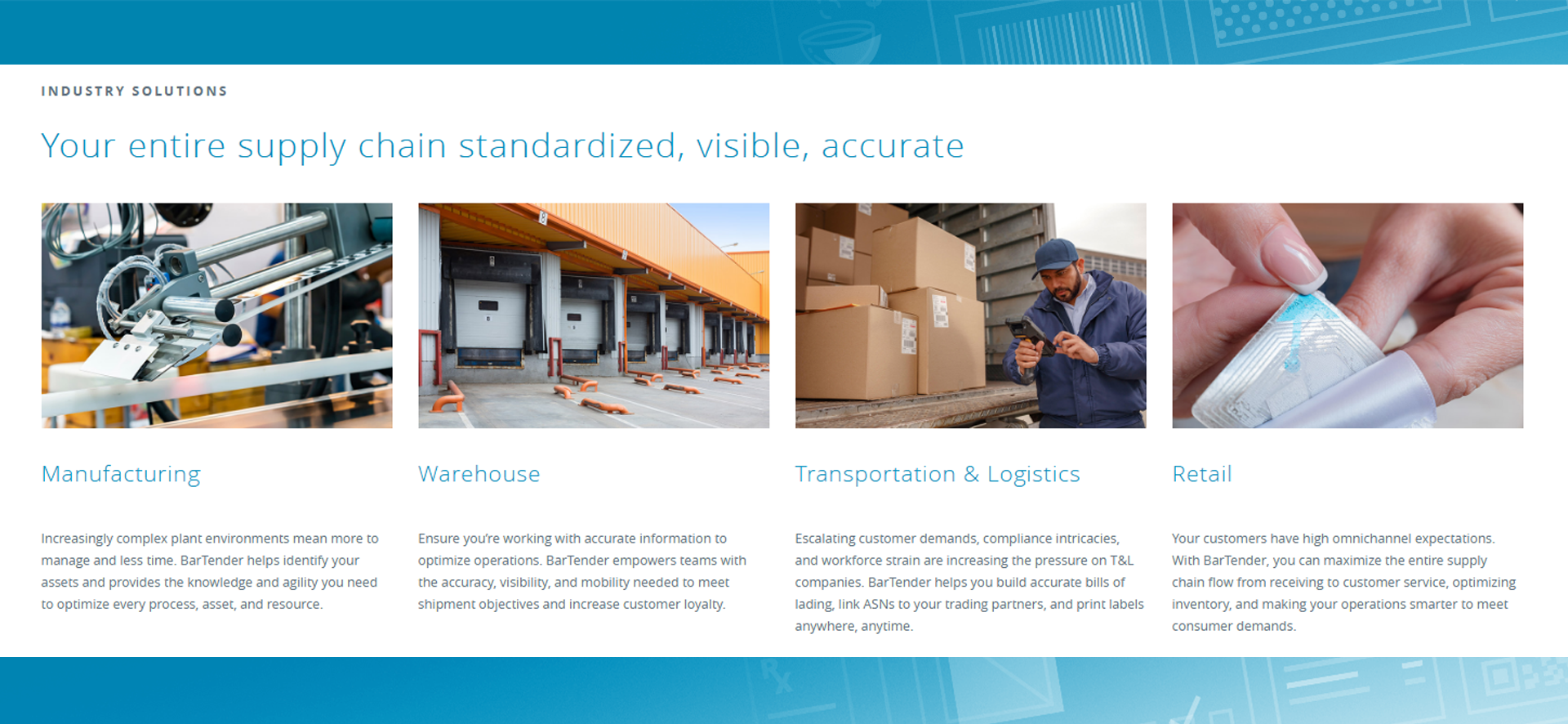 Enable interoperable communications for industry standards and compliance with support for the latest barcode and labeling standards (GS1, RFID, UDI, GHS, and more).